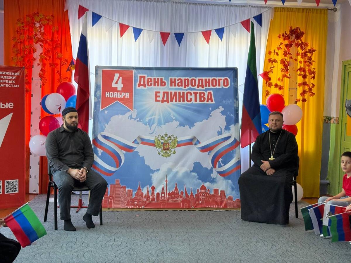 Мероприятие собрало детей, воспитателей и уважаемых гостей. Среди них были настоятель Тарумовского храма Андрея Первозванного, отец Дионисий Степанищев, и руководитель отдела просвещения мечети села Тарумовка, Магомед Магомедов.