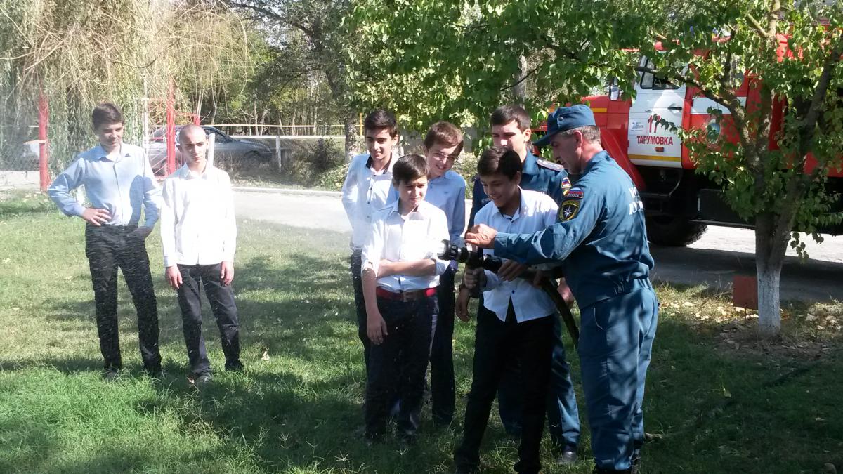 Учащиеся 8 «б» класса Тарумовской СОШ с преподавателем ОБЖ Сергеем Петровичем Сыроежкиным побывали в пожарной части, где работники рассказали им о своей работе. Ребята узнали об истории развития гражданской обороны в России, этапах ее становления. Школьники в ответ делились своими знаниями предмета ОБЖ: какие бывают чрезвычайные ситуации, как оказать и вызвать помощь в том или ином случае. Инспектор ОНД по Тарумовскому району Курбан Абдурахманович Хасбулатов обратил внимание школьников на ложные вызовы пожарных. «Чаще всего ложные вызовы происходят по вине школьников, и за подобные хулиганские действия существует административное наказание. Но самое главное – во время ложного вызова может произойти внештатная ситуация, где нужна реальная помощь пожарных. Это, ребята, очень серьезная ситуация, и шутить с этим нельзя», - отметил инспектор.