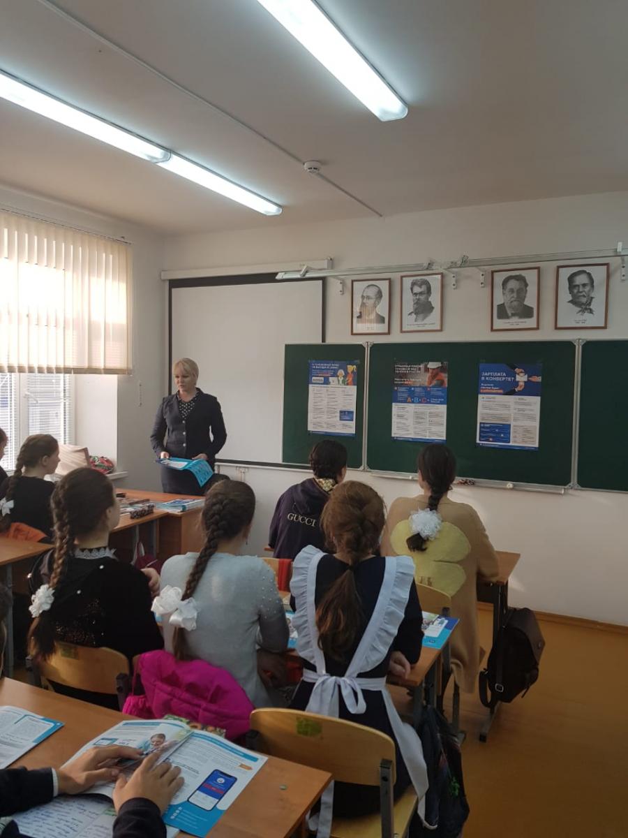 Также С.Ю.Давыдова  раздала всем ученикам красочные буклеты, которые Пенсионный фонд РФ  специально разработал для таких уроков. В буклете отражены последние изменения в пенсионном законодательстве. Этот небольшой красочный буклет дает молодым людям ответы на главные вопросы: как устроена пенсионная система России, что и когда надо делать для того, чтобы обеспечить себе достойный размер будущей пенсии.