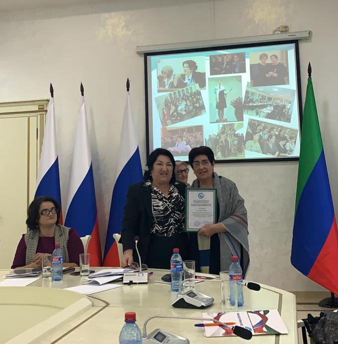За добросовестную и ответственную работу лучший председатель среди районных и городских Советов женщин РД Алла Ивановна Чебанько награждена Благодарственным письмом Женсовета РД.