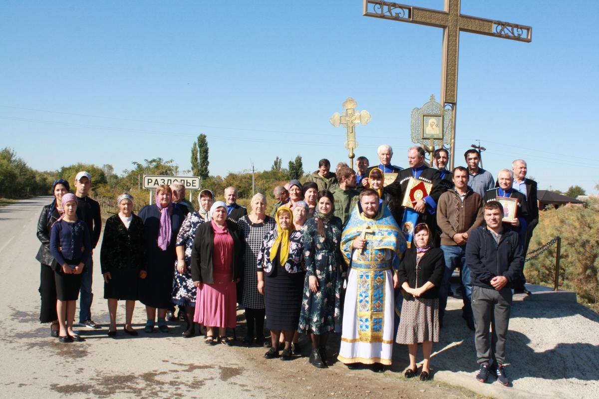 Далее прихожане Крестным ходом прошли к придорожному Поклонному Кресту, установленному православными жителями села Раздолье в 2018 году, освященного в Престольный праздник Покрова Пресвятой Богородицы. Иерей Дионисий еще раз поздравил прихожан с праздником и напомнил о важности Поклонного Креста: «Отправляясь в путь, человек попросит милости и помощи у Господа и небесных заступников. А Поклонный крест установлен как раз для того, чтобы путники, въезжая в село или покидая его, могли помолиться и испросить благословения Божия».