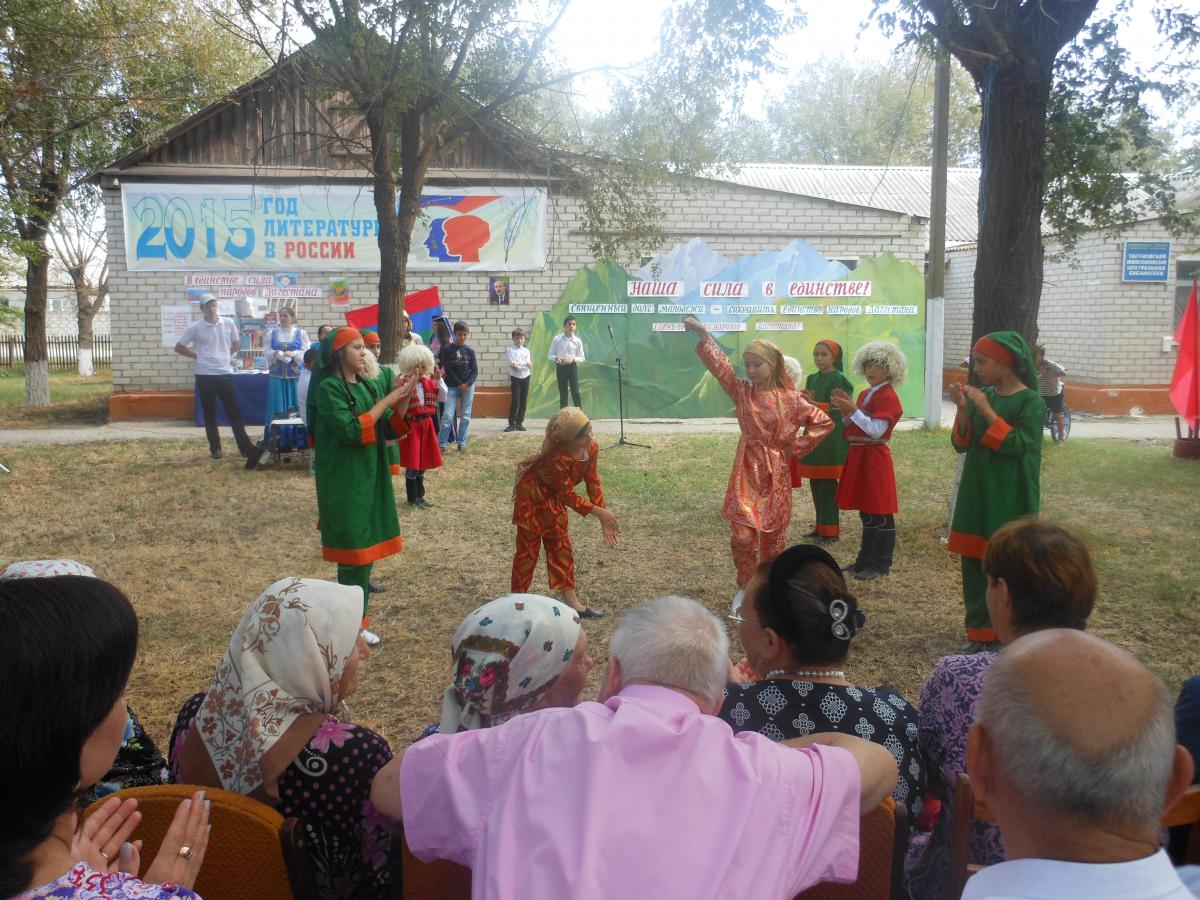 На красочно оформленной площадке собрались представители разных национальностей, проживающих в Тарумовском районе: ветераны, молодежь, дети. Яркие костюмы разных народов сменяли друг друга на сценической площадке.