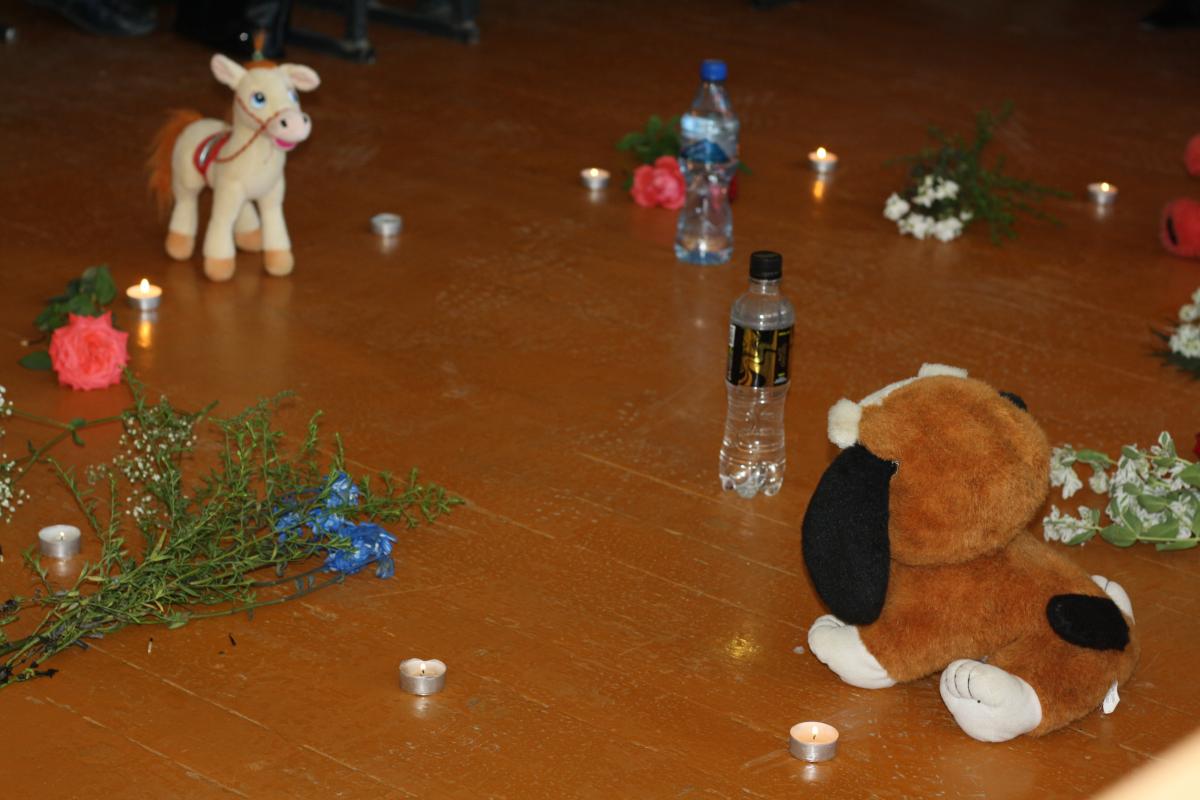 Учителя Любовь Ивановна Мещерякова и Лариса Петровна Гарина рассказали ребятам о трагедии, произошедшей в Беслане в 2004 году, сопровождая свой рассказ кадрами и документальным фильмом о тех страшных событиях.