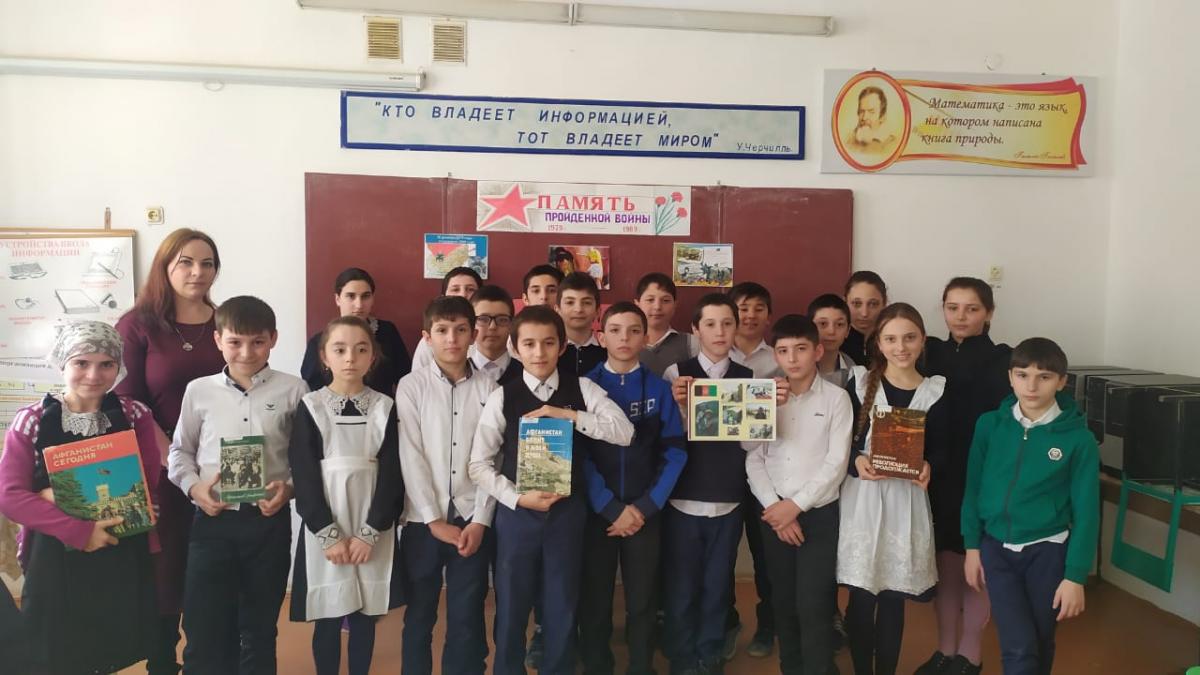 15 февраля в 5 «в» классе Тарумовской СОШ (классный руководитель Хайрула Далгатович Гаджиев) прошло внеклассное мероприятие «Память пройденной войны», посвященное 31 году со дня вывода войск из Афганистана, которое подготовила и провела библиотекарь Тарумовской районной библиотеки Кристина Лепехина.