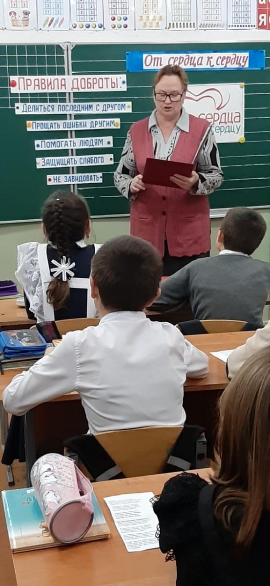 Работники Тарумовской Центральной библиотеки проводят разноплановые мероприятия как для взрослой категории читателей, так и для молодежной аудитории. И если мероприятия для взрослых  - это тематические мероприятия для досуга, то для подрастающего поколения – патриотическая, воспитательная тематики. Так, классный час «От сердца к сердцу» с учащимися 4 «в»  класса Тарумовской СОШ 3 декабря, в Международный день инвалидов, провела старший библиотекарь  детской библиотеки Валентина Костина при  поддержке классного руководителя Анжелы Хазбулатовой. Ребята читали стихи, посмотрели ролик, вместе пели песни о доброте и милосердии. Затем учащиеся собрали бумажные цветы, на лепестках которых были написаны слова, которые все должны знать и применять по отношению к тем, к нуждается в нашей помощи. Закончилось мероприятие песней кота Леопольда  «Если добрый ты…» из детского мультфильма.