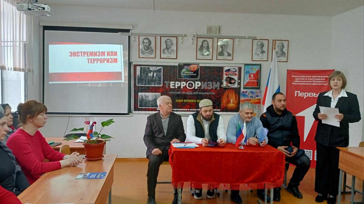 «Круглые столы» с учащимися и родителями проводят Хабибула Халимов, председатель районного Собрания депутатов; Али Алиев, начальник отдела по безопасности и организации деятельности АТК администрации МР «Тарумовский район»; Закарья Закавов, помощник главы Тарумовского района по вопросам противодействия коррупции; духовенство района, главы сельских поселений и общественные лидеры сел.