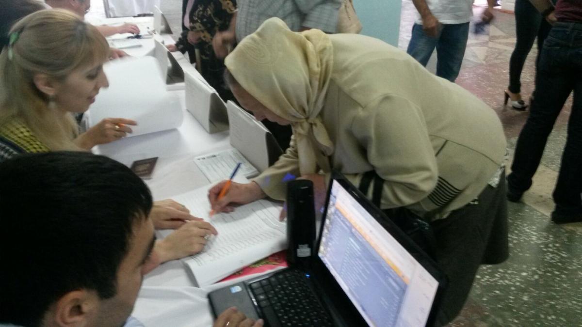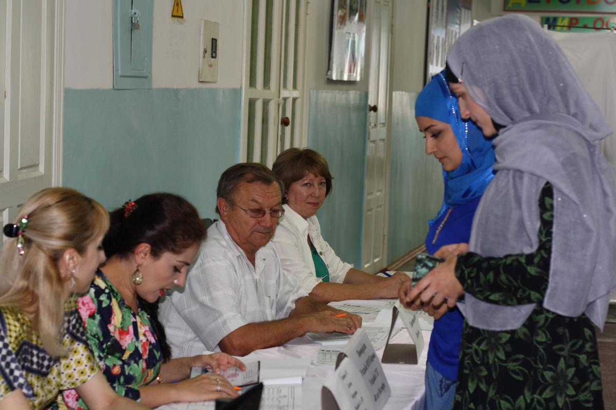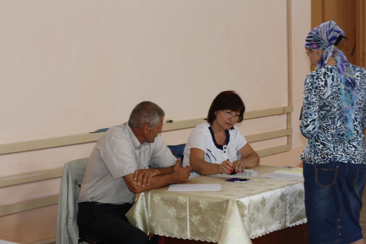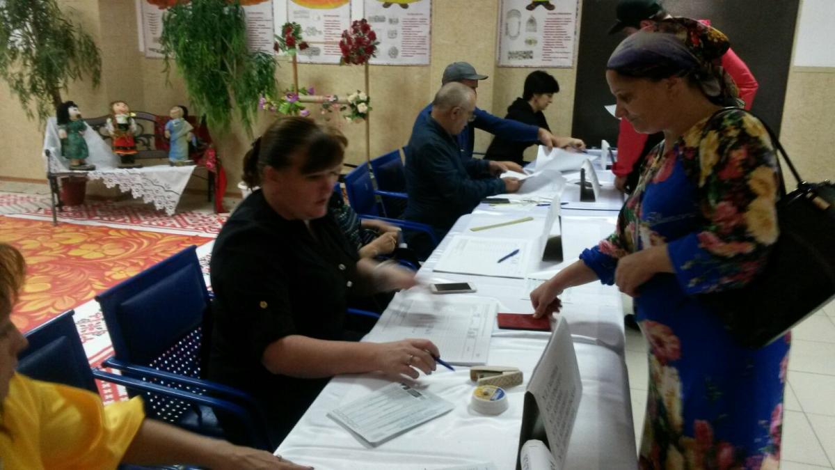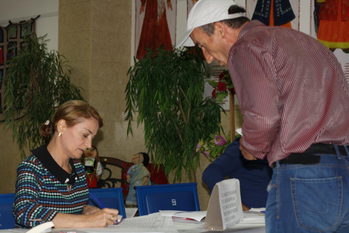 В Тарумовке выборы проходят на двух избирательных участках. На избирательном участке №1410 в списках зарегистрировано 2100 избирателей. Как сказала председатель избирательной комиссии Марина Надирсултановна Гайтемирова, активность избирателей нормальная, на 11 часов дня уже проголосовали 11% избирателей.