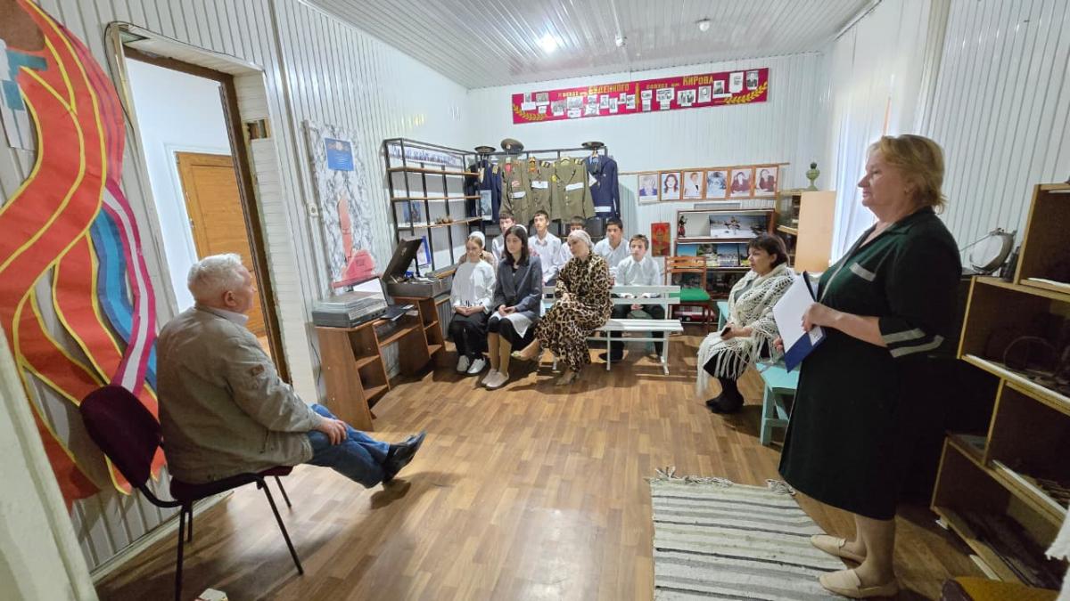 В рамках празднования 80-летия Великой Победы и проекта «Участники СВО – герои нашего времени», в Тарумовском музее трудовой и боевой славы состоялась встреча учащихся 8-го класса Тарумовской СОШ с земляком, участником специальной военной операции Сергеем Шапошниковым.