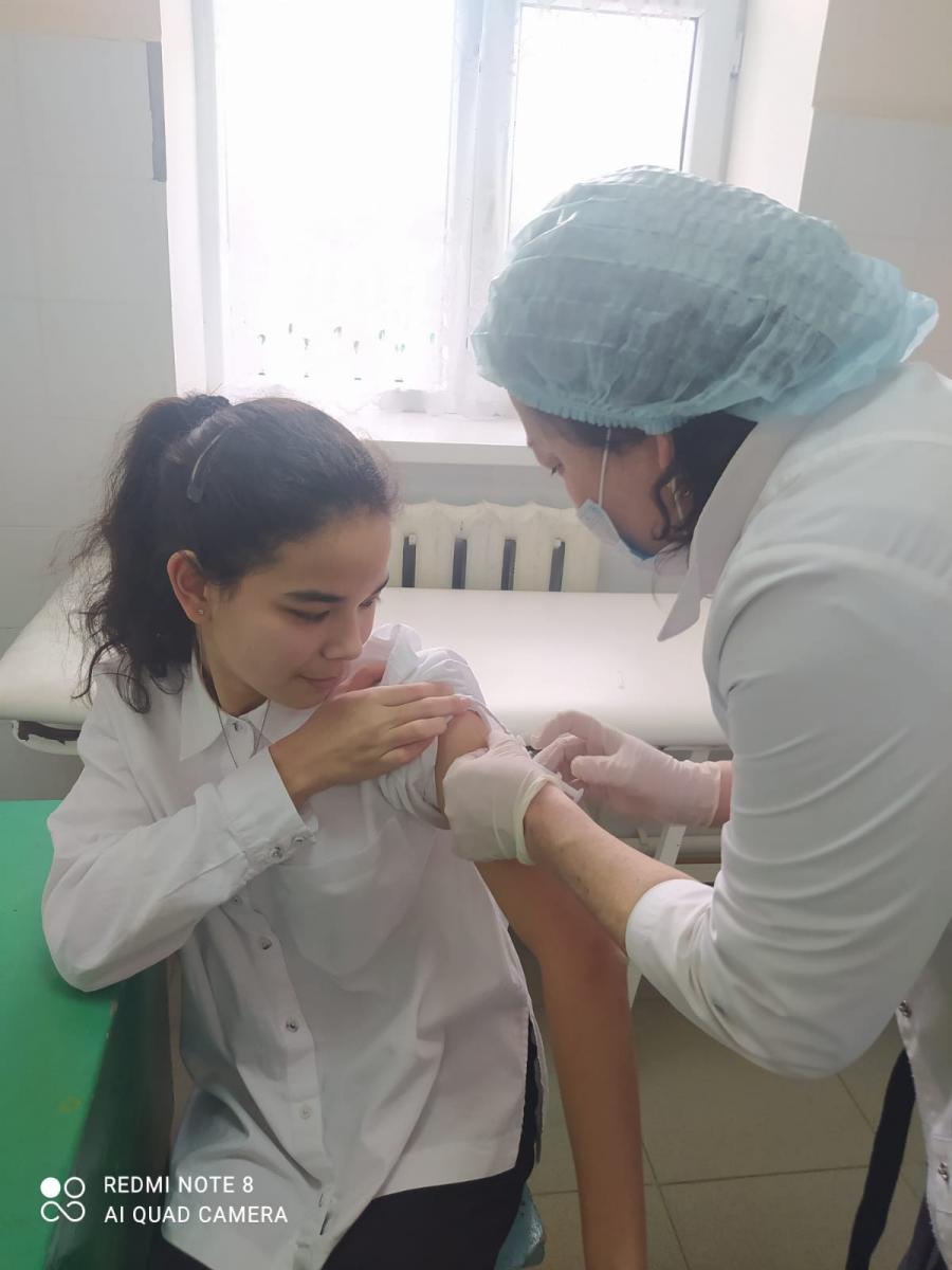 К сожалению, коварный вирус COVID все ещё продолжается, болеют, к большому сожалению, и дети. В Тарумовский район поступила вакцина «Гам-Ковид-Вак-М» торговой марки «Спутник-М» для вакцинации детей. 4 февраля десять одиннадцатиклассников нашей школы по их желанию, по заявлению родителей, после осмотра врача-педиатра получили вакцину «Спутник-М». Я тоже написала заявление, чтобы моих детей провакцинировали, так как, к сожалению, не успела к 4 числу…