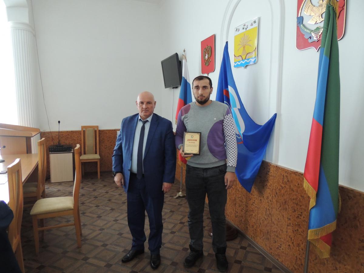 Открывая совещание, глава района поздравил Асадулу Асадулаева, главного специалиста отдела по делам молодежи, ФК, спорту и туризму, руководителя молодежного движения «Тарволонтер» с третьим местом среди волонтерских движений муниципальных городов и районов Республики Дагестан и вручил Диплом 3-й степени.